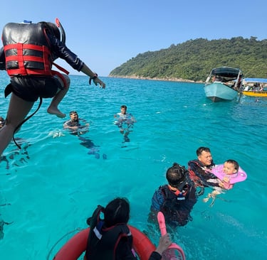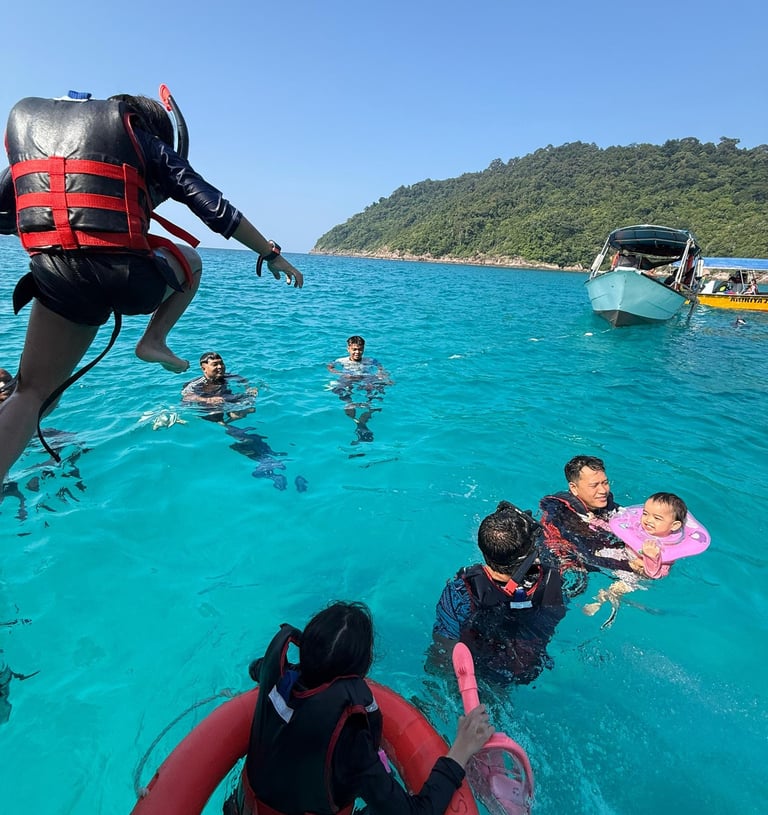 Explore moments captured during our trips, showcasing crystal-clear waters, vibrant coral reefs, exciting snorkeling activities, comfortable boats, and unforgettable experiences with our guests. Each photo reflects the beauty of Redang Island and the quality service provided by Bani Venture.